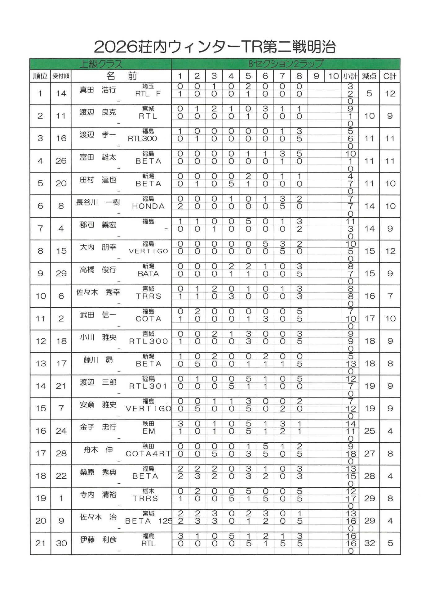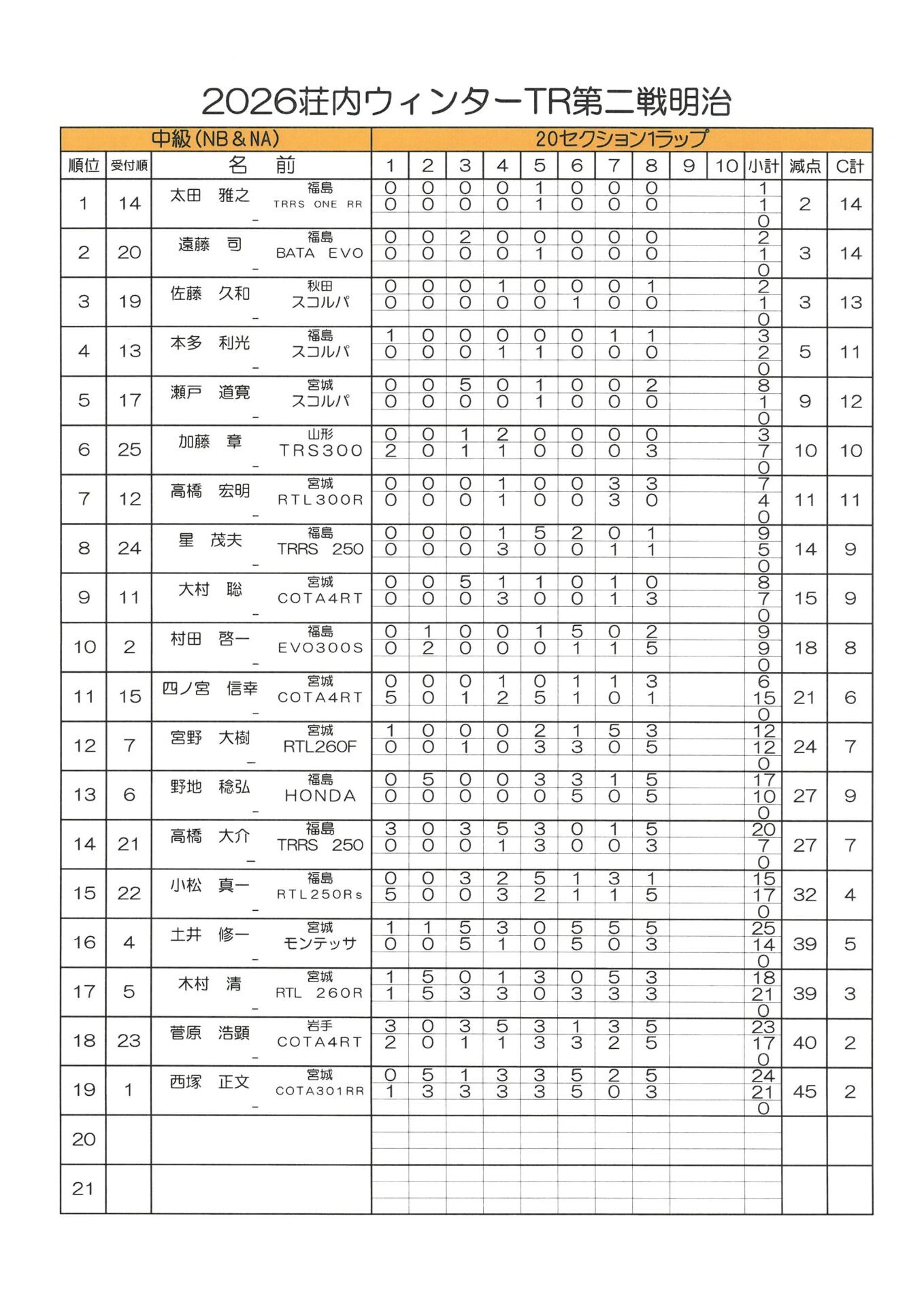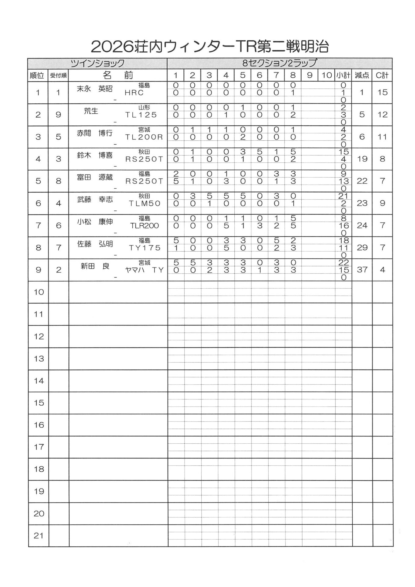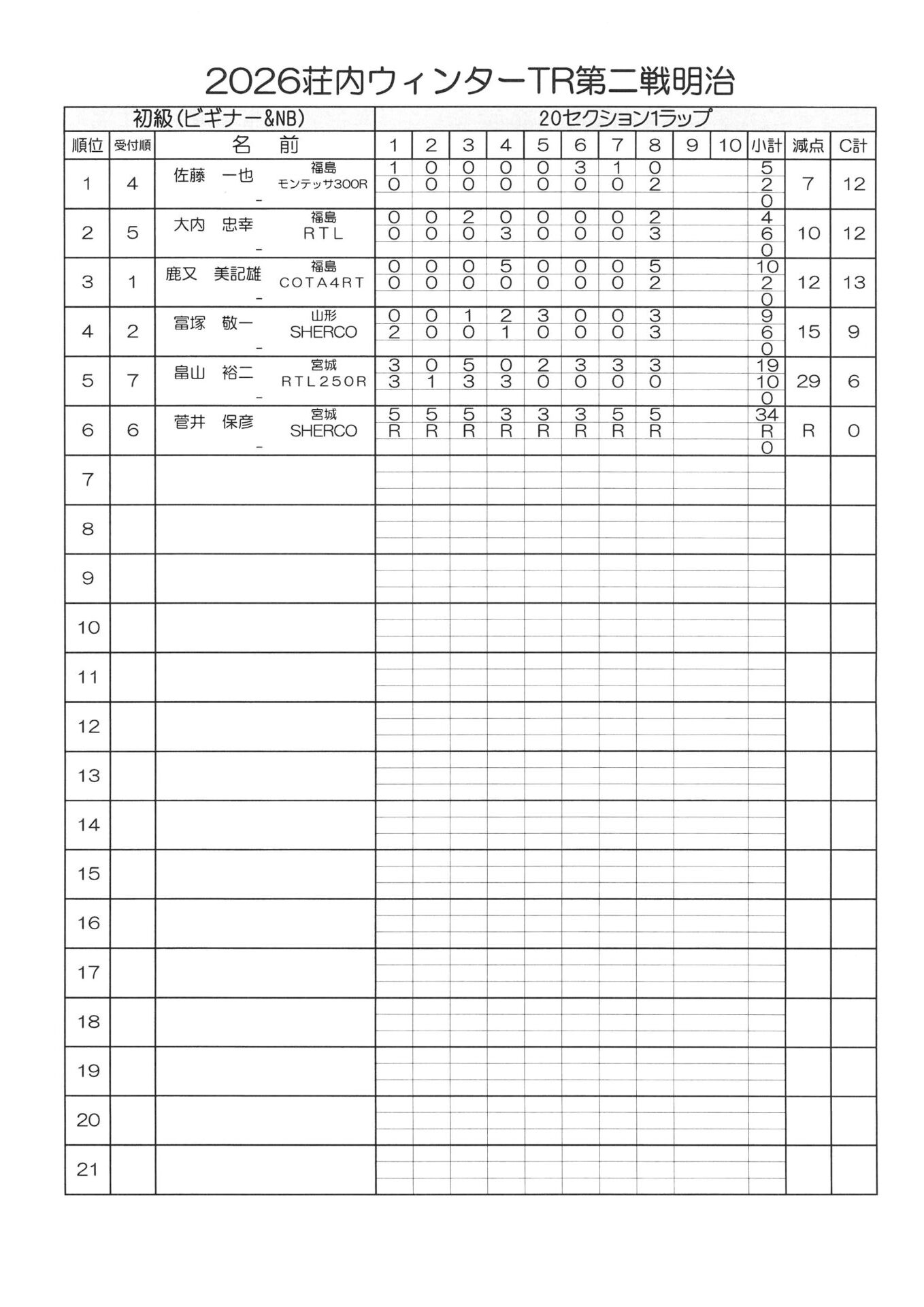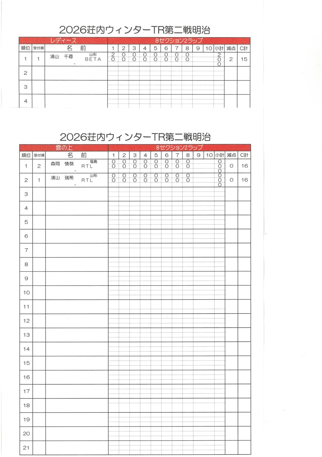 3月15日(日)荘内TRウインター第2戦明治大会が晴天の中行われました。